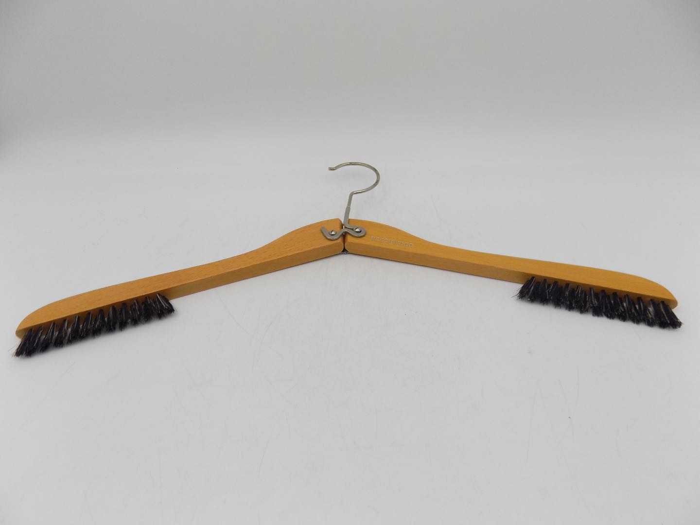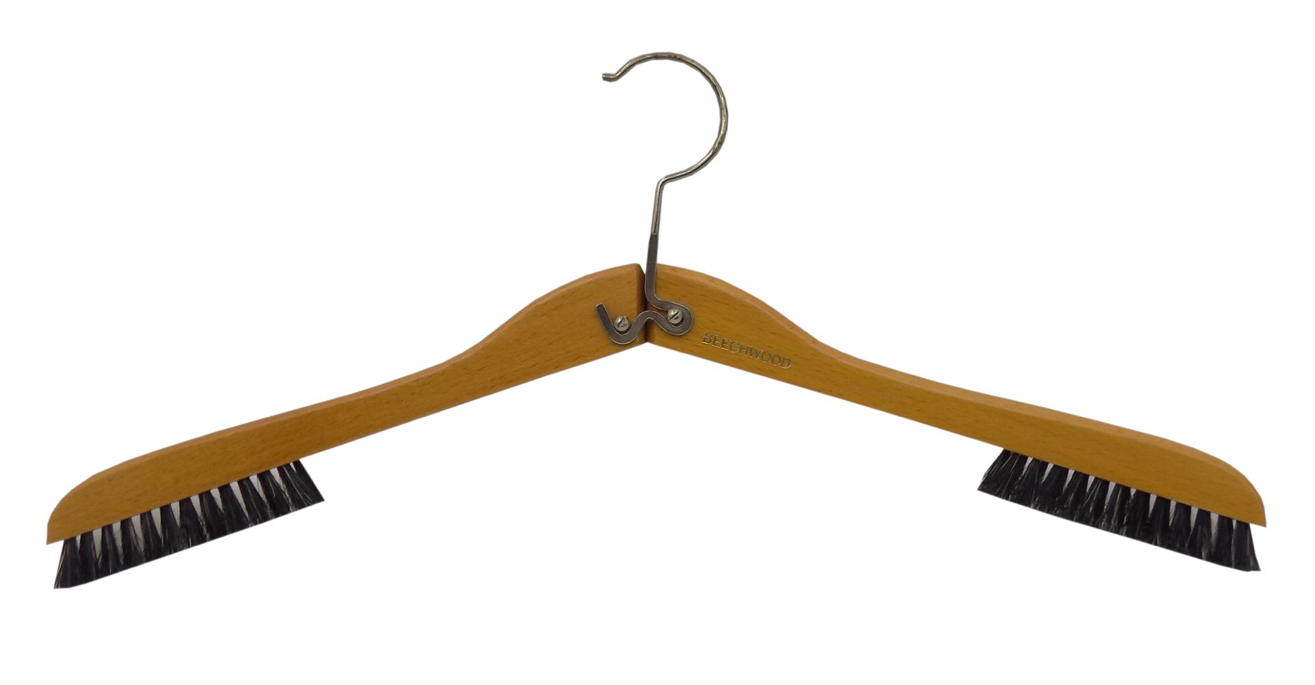 Wyjątkowy - wieszak wykonany jest z drewna bukowego i posiada szczotki do ubrań, które nadają mu wyjątkowy wygląd.