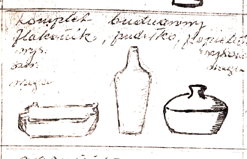 Wzór 501 - Komplet buduarowy, flakonik, pudełko, popielniczka
