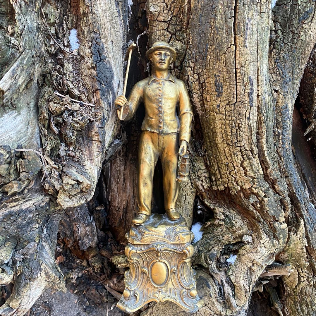 Figura z cynkalu przedstawiająca górnika prawdopodobnie z przełomu XIX/XX w. Wymiary; wys.35,5 x 11,5 cm.