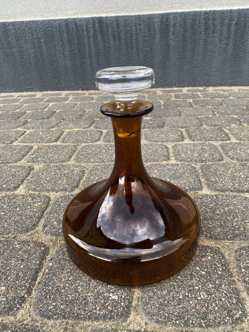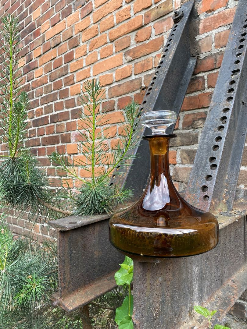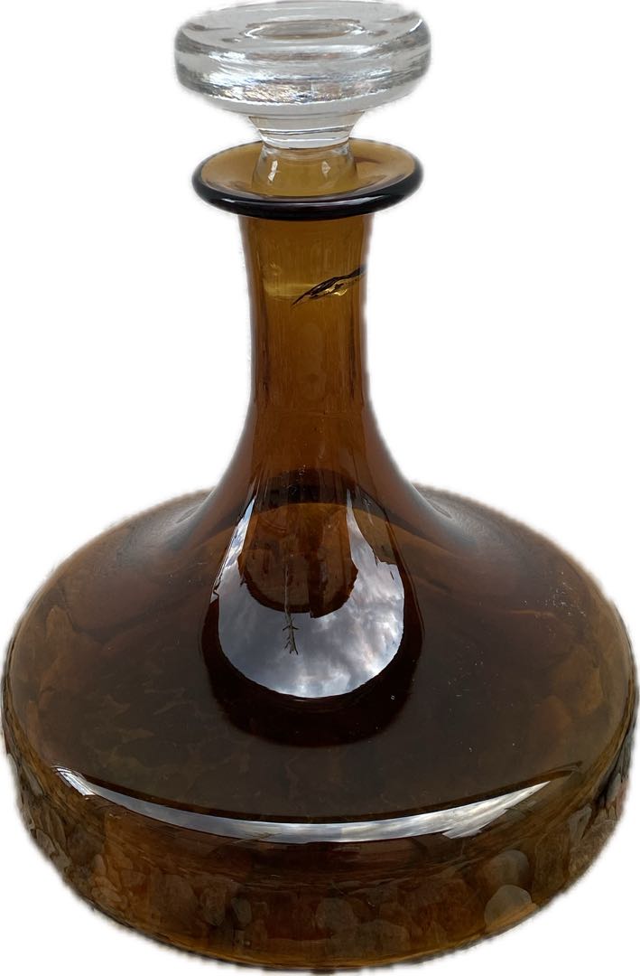 Ciężka zabytkowa karafka prawdopodobnie z poł. XX w. Bez uszkodzeń. Na szyjce przebarwienia wewnątrz szkła. Wymiary; wys.22,5 x 19 cm.
