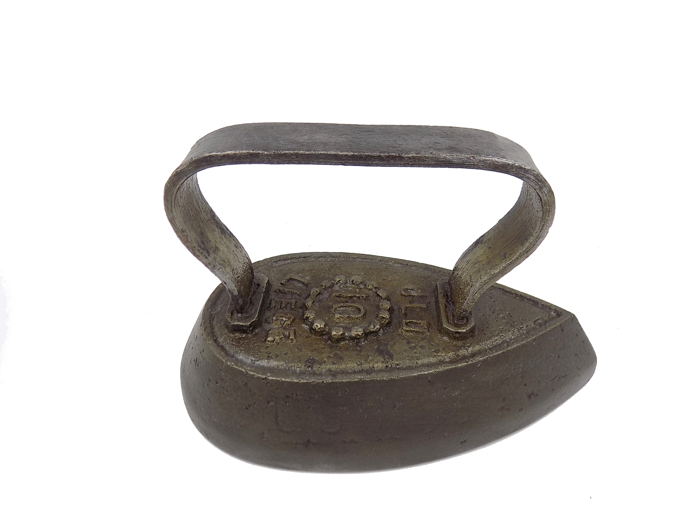 Zabytkowe żelazko z XIX w. Sygnowane. Wymiary; wys.11 x 19 x 10,5 cm