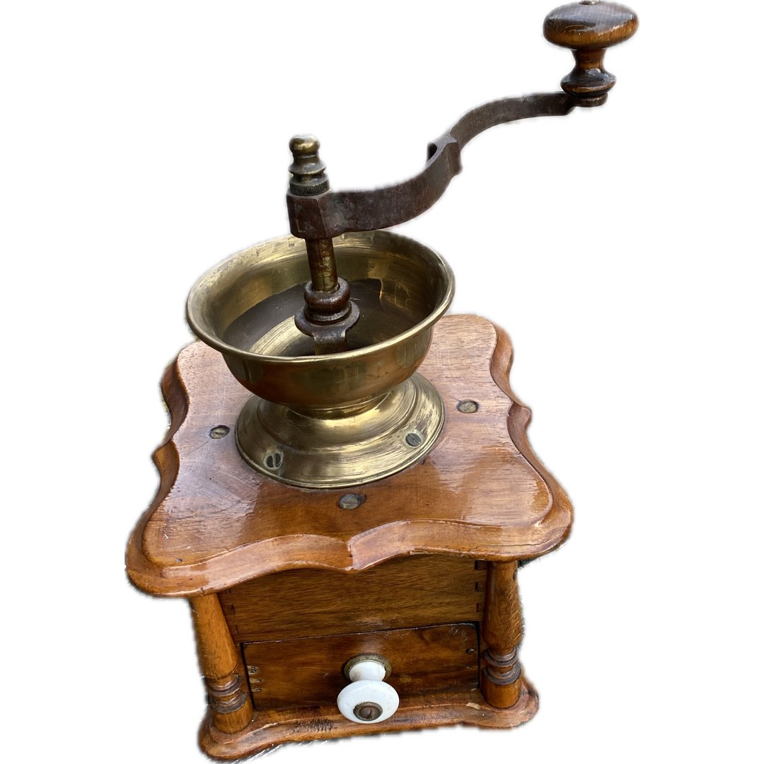 Zabytkowy młynek z przełomu XIX/XX wieku w stylu eklektycznym. Sprawny. Wymiary; wys.26 x 16,5 x 16 cm.
