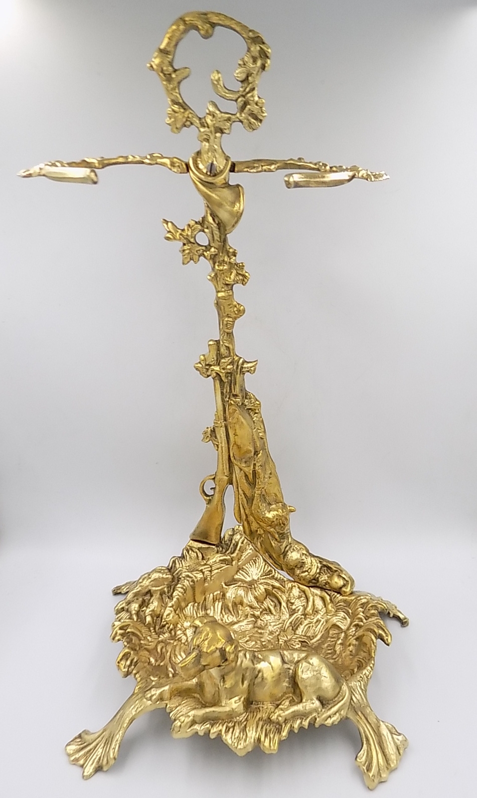 Zabytkowy stojak z mosiądzu do kominka lub na parasole. Wymiary; wys.55 x 32 x 25 cm