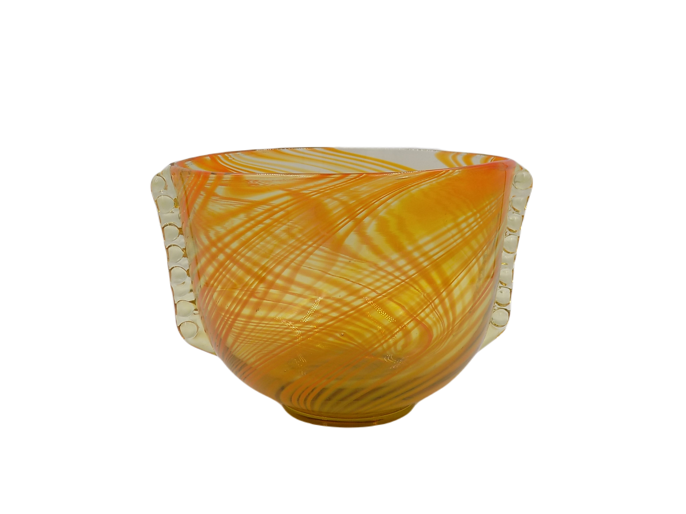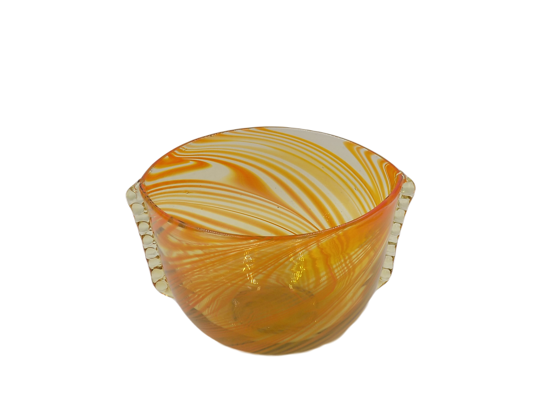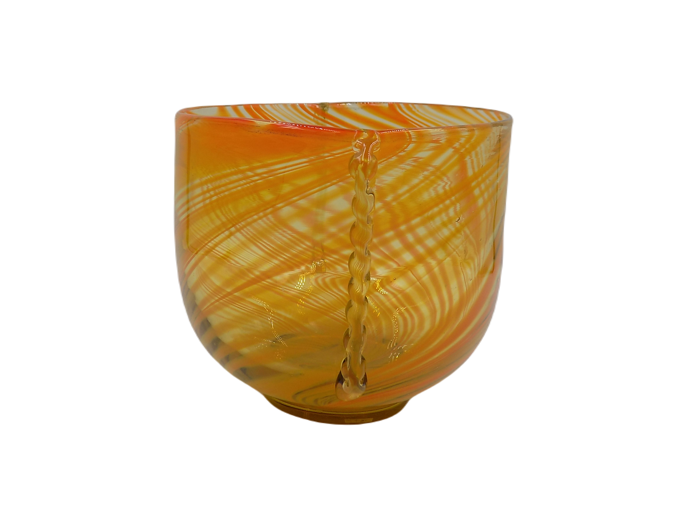 Dekoracyjna misa z Huty Szkła Laura z okresu PRL. Szkło barwione w masie. Wymiary; wys. 13,5 x 20 x 15,5 cm