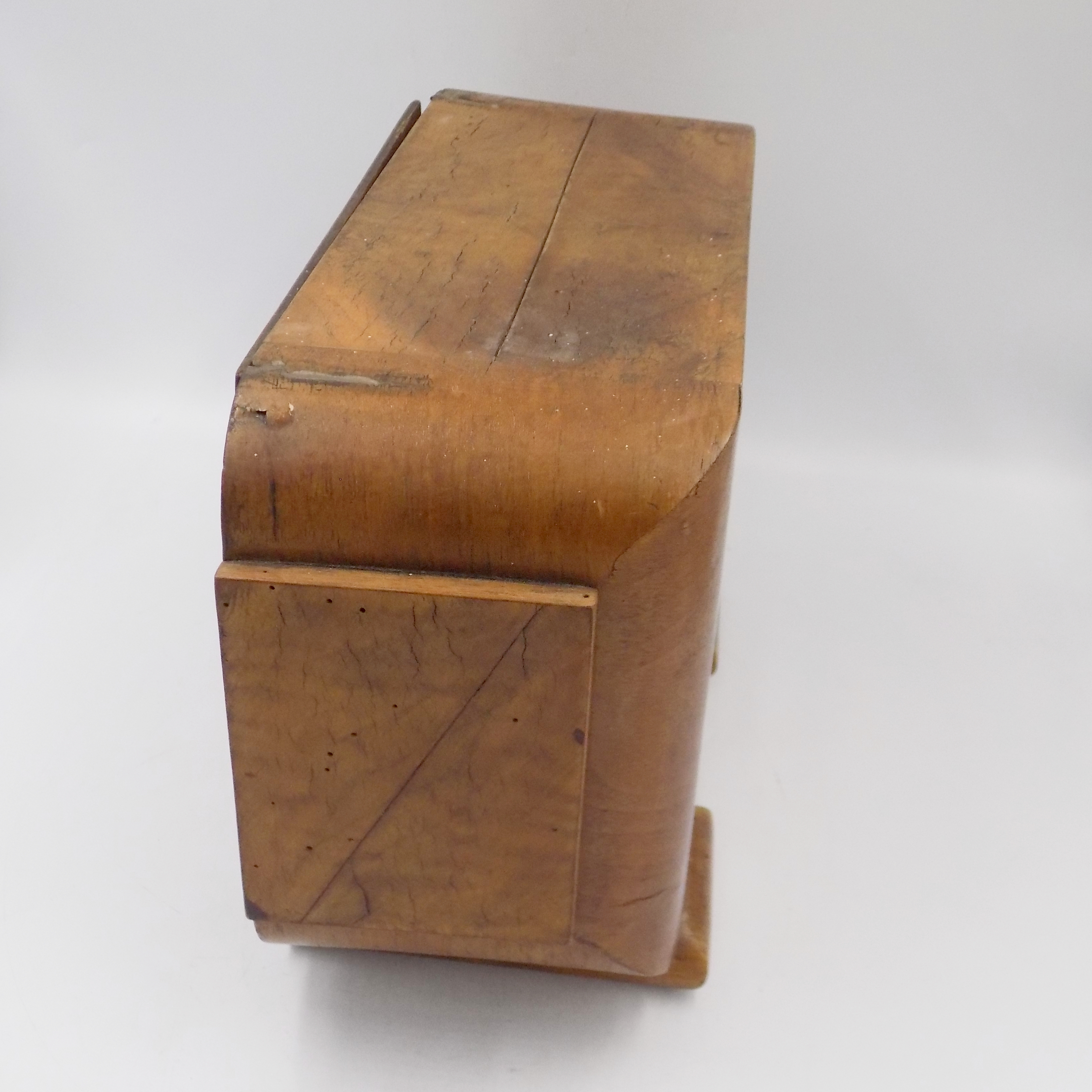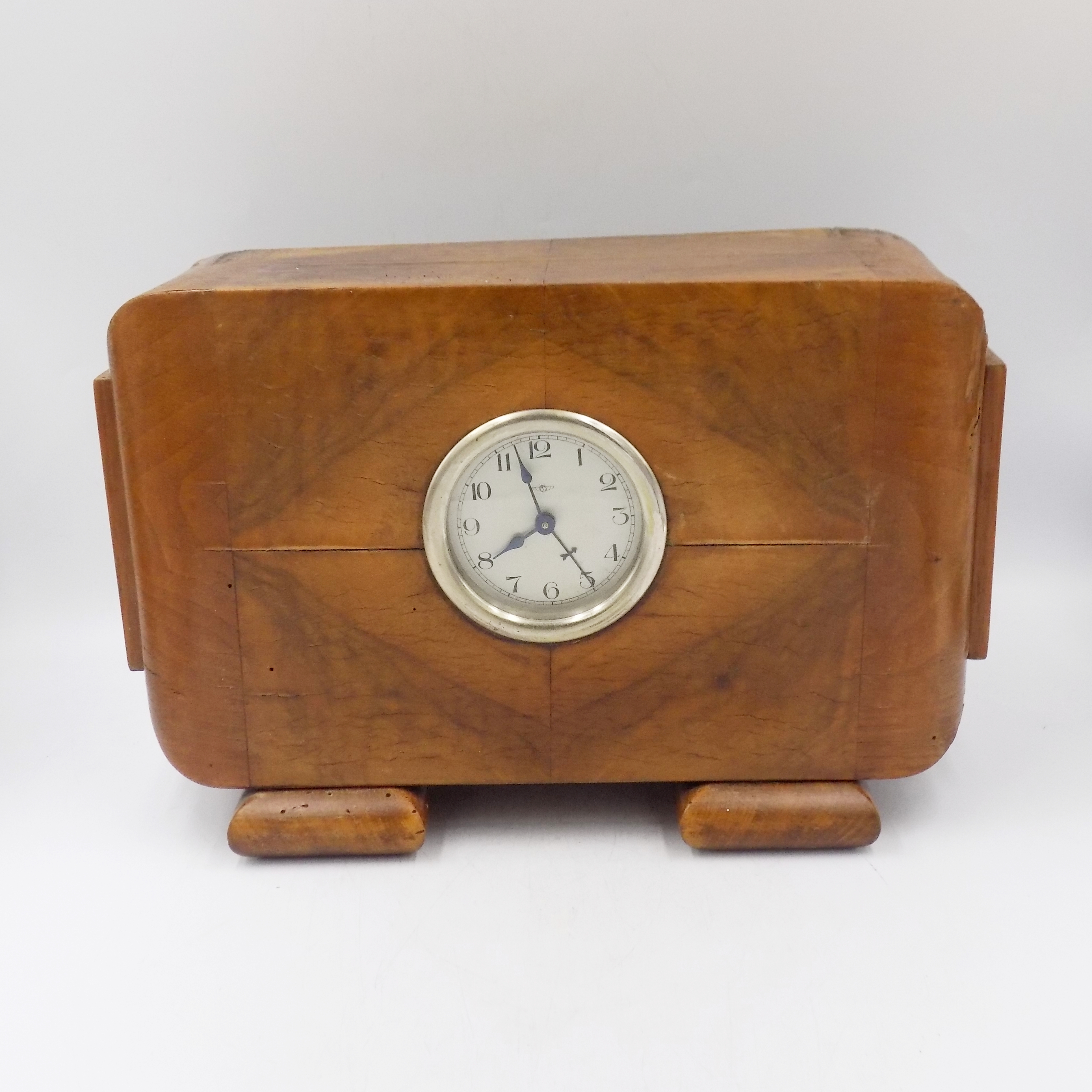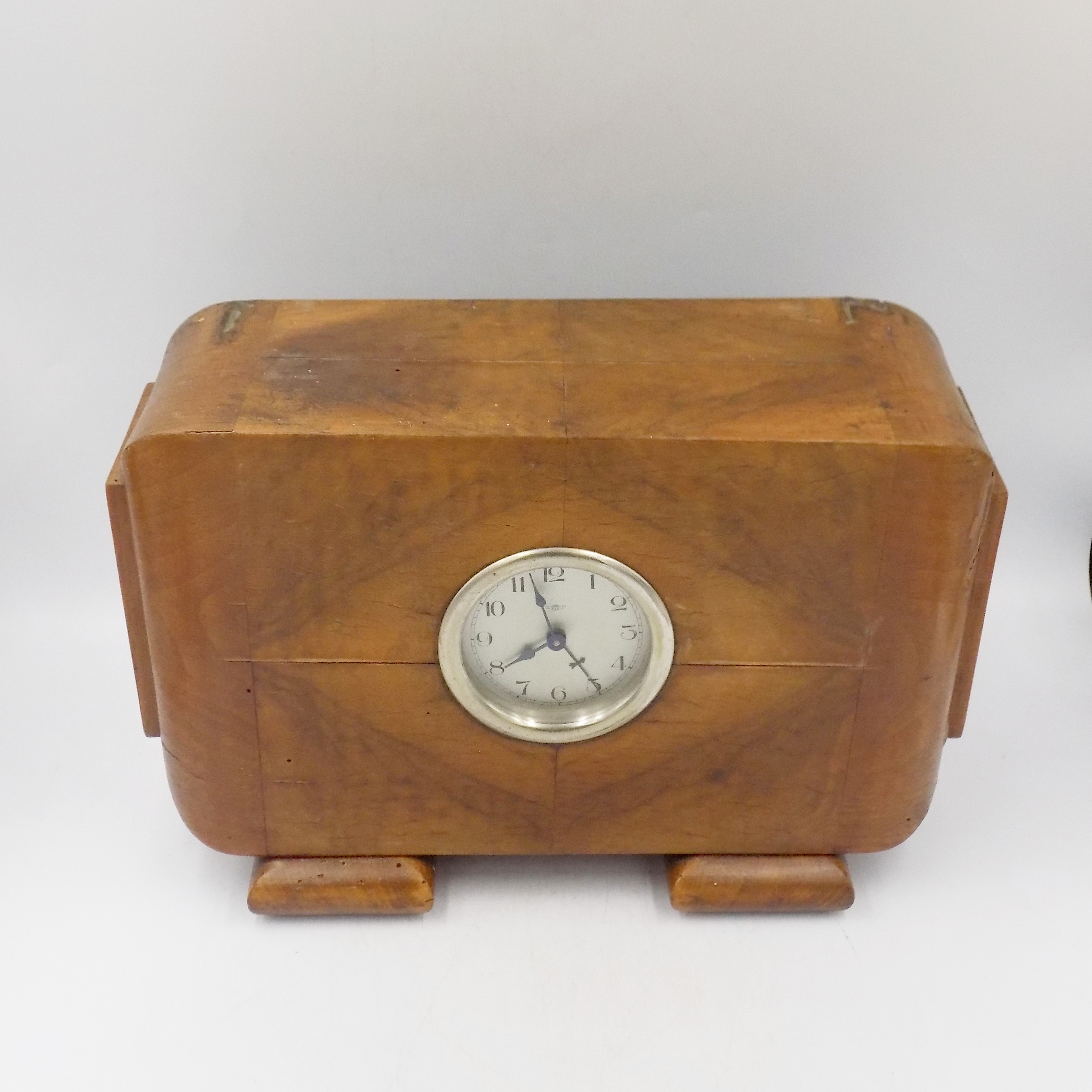 Zegar kominkowy w stylu Art Deco z lat 20/30-tych XX w. Sprawny. Wymiary; wys.22 x 35,5 x 14 cm.