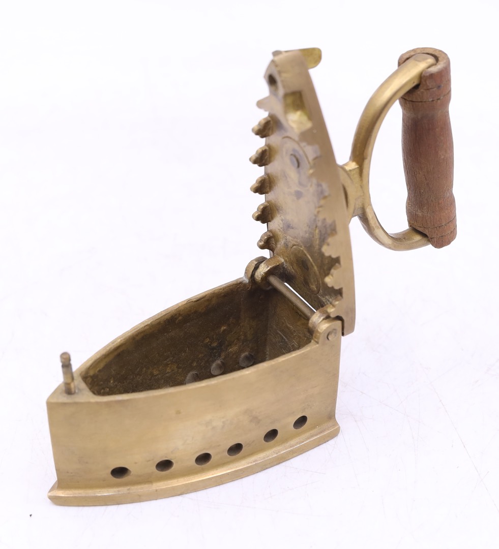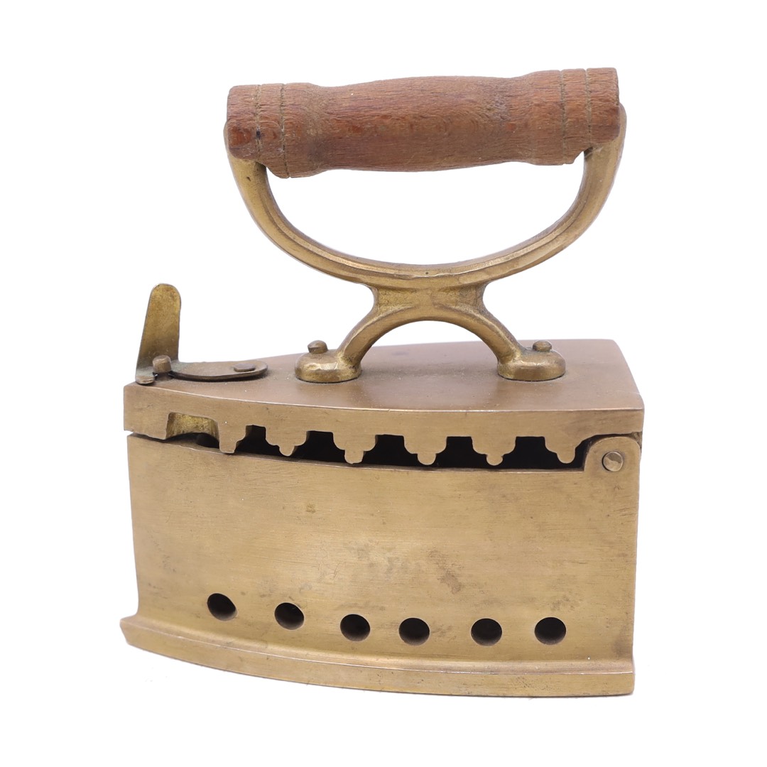 Wykonane z mosiądzu żelazko emanuje subtelnością i pięknem naturalnego metalu. Wysoka jakość materiału nie tylko podkreśla wyjątkowy charakter tego przedmiotu, ale także gwarantuje trwałość i odporność na upływ czasu.
