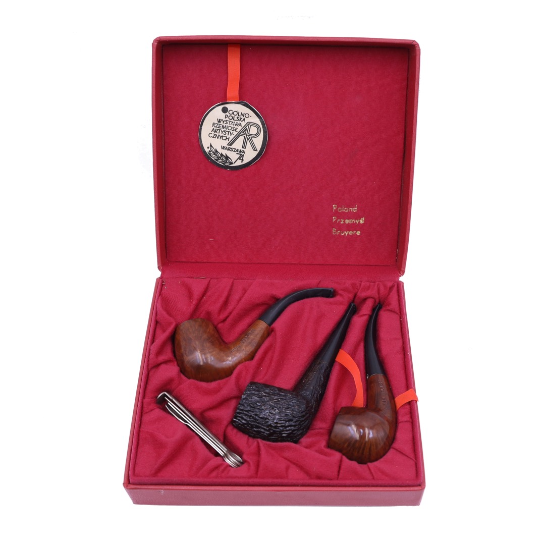Z wielką przyjemnością prezentujemy Państwu wyjątkowy zestaw fajek kolekcjonerskich, należących do prestiżowej serii Bruyere Kulpiński. Te niezwykłe dzieła rzemiosła artystycznego zostały po raz pierwszy zaprezentowane szerokiej publiczności na Ogólnopolskiej Wystawie Rzemiosła Artystycznego w Warszawie w 1974 roku. Co jeszcze bardziej podkreśla ich wartość i wyjątkowość, tytuł mistrzowski nadany Ryszardowi Kulpińskiemu za wyjątkowy kunszt zdobniczy trafił w ręce artysty dopiero w 1985 roku.